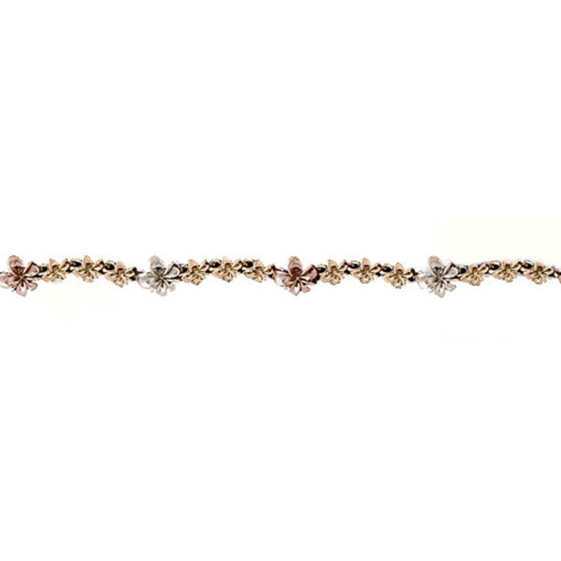 A brand new tri-color 14k gold plumeria bracelet.
